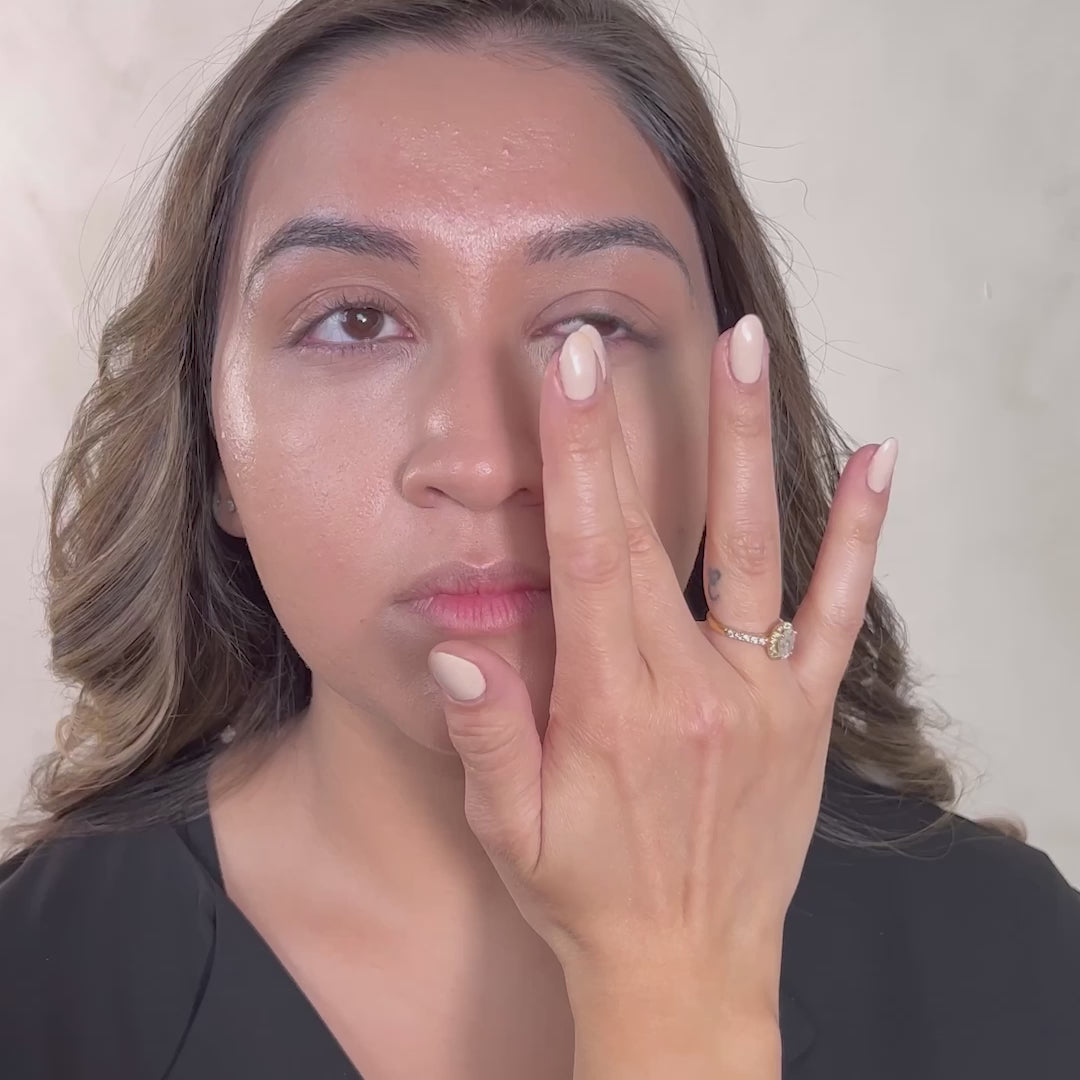 Spremere una piccola goccia sul dorso della mano. Utilizzare un pennellino o la punta delle dita pulite per applicare il correttore con movimenti leggeri e picchiettanti. Sfumare delicatamente per fondere il correttore nella pelle e ottenere una finitura perfetta. Applicare dopo il fondotinta e fissare leggermente con la cipria.